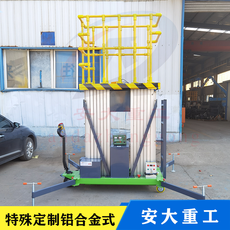 铝合金式升降平台采用高强度优质铝合金材料,具有造型美观、体积小、重量轻、升降平稳、安全可靠等优点,平台自身佩戴保险钢绳和安全?;ぷ爸?,并能够上下操作,广泛用于工厂、宾馆。